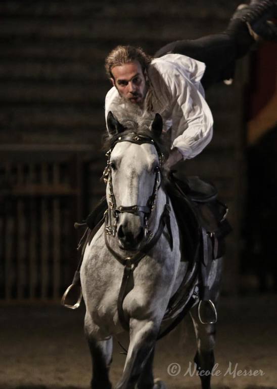 Er hat vor nichts Angst (Feuer, Explosionen, Lichteffekte), deshalb ist er auch ein sehr gutes Stunt- und Ritterturnierpferd.