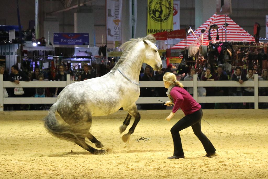Seine Leidenschaft ist die klassische Dressur, aber natürlich kann er auch Zirkuslektionen und Freiheitsdressur.